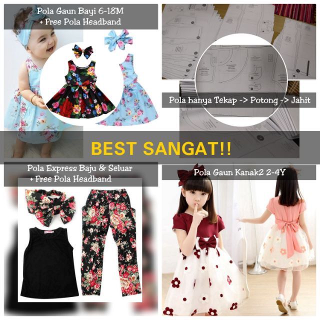 Panduan Mudah Cara Jahit Pakaian Kanak Kanak Ada Lebih 80 Paten Dress Pola Lengkap Gaun Legging Headband Shopee Malaysia